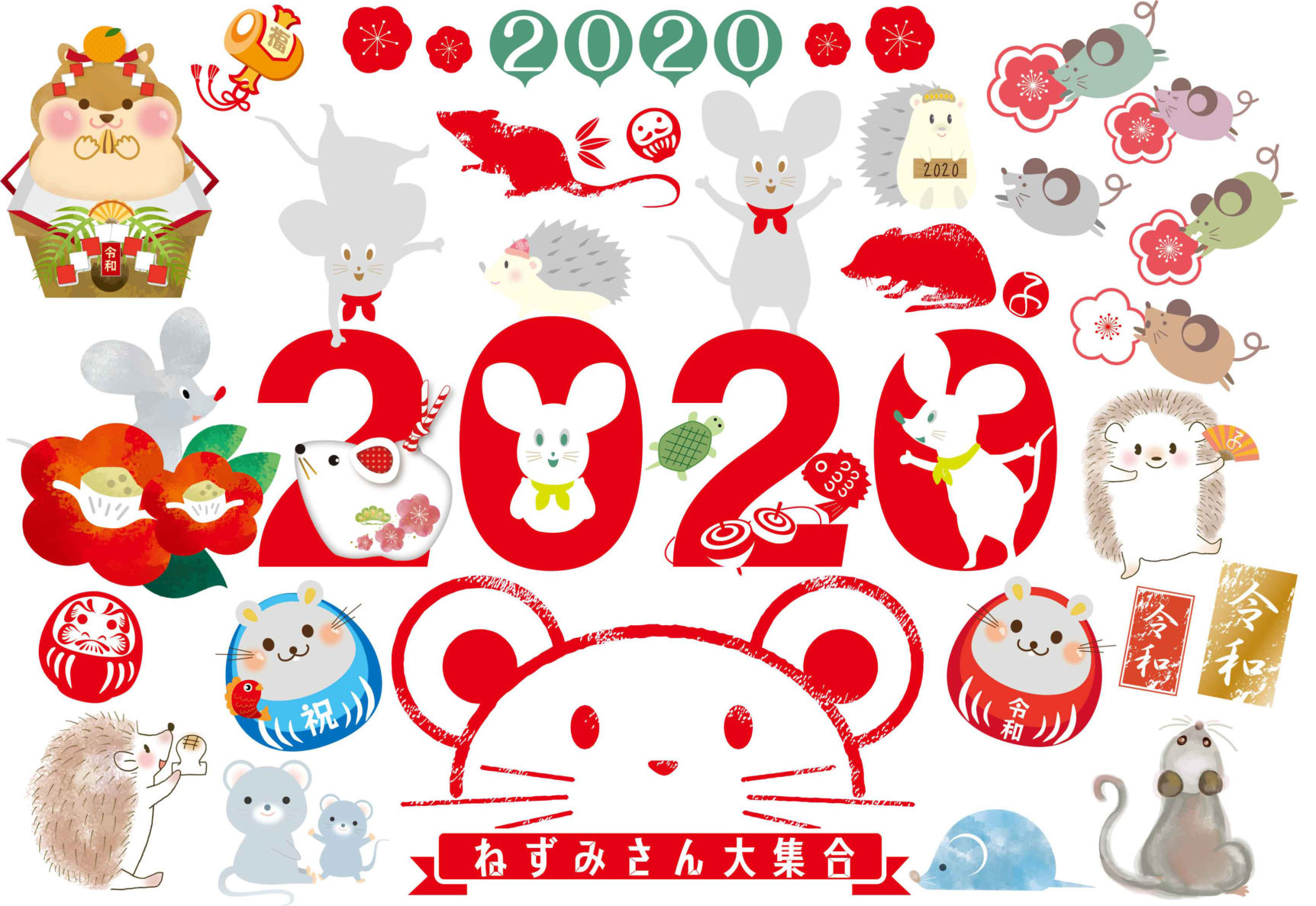 無料イラスト 19 年賀状 賑やかな正月アイテム