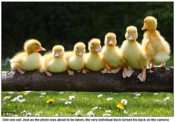 家族写真で一人だけそっぽ向く赤ちゃんアヒル 11年5月5日 エキサイトニュース